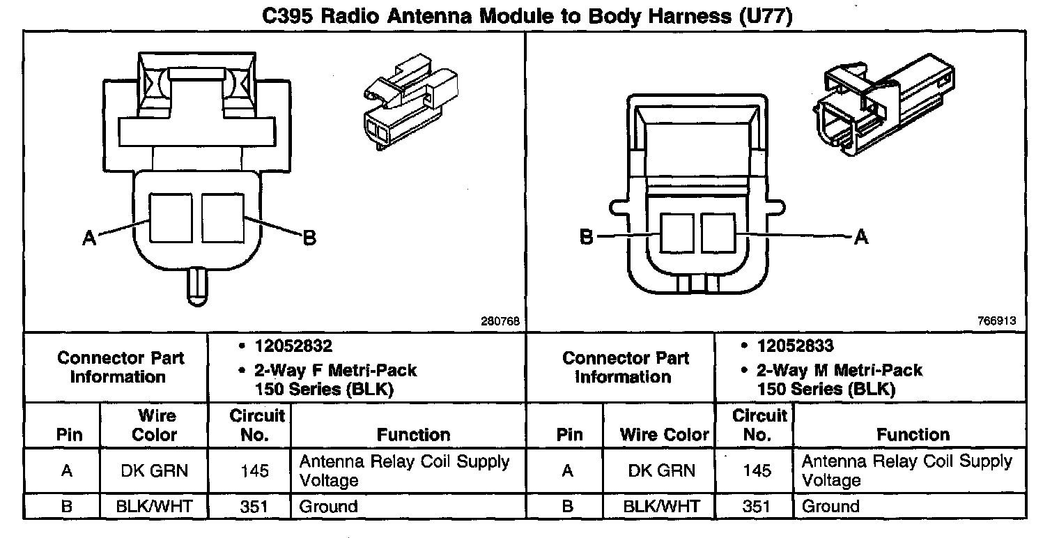 C395 Radio Antenna Module To Body Harness (With RPO Code U77):