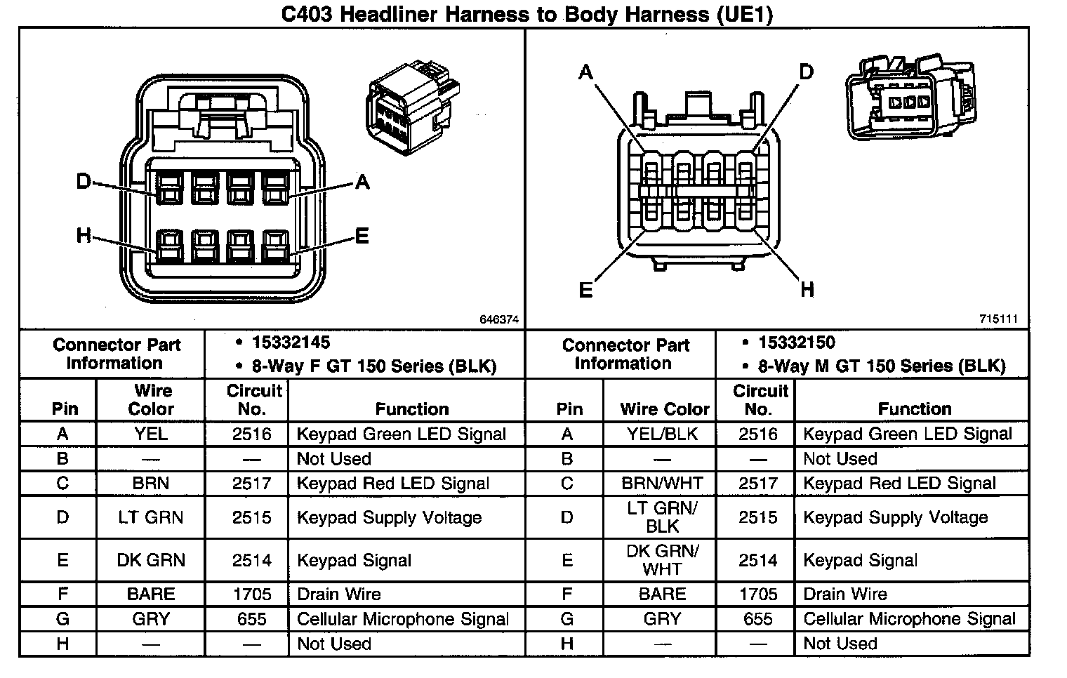 C403 Headliner Harness To Body Harness (With RPO Code UE1):