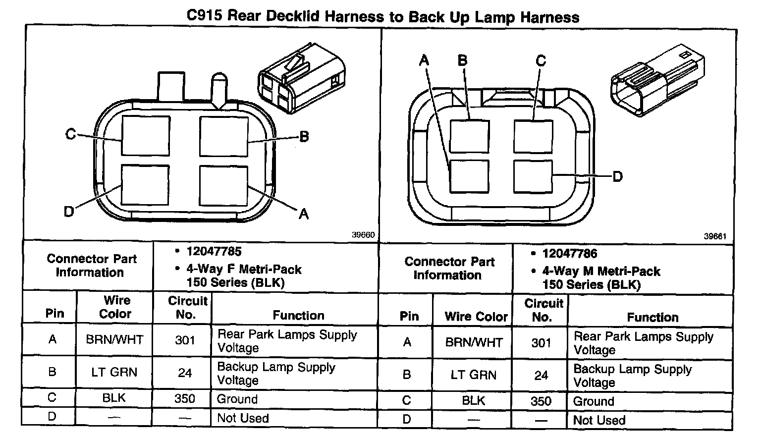C915 Rear Decklid Harness To Back Up Lamp Harness: