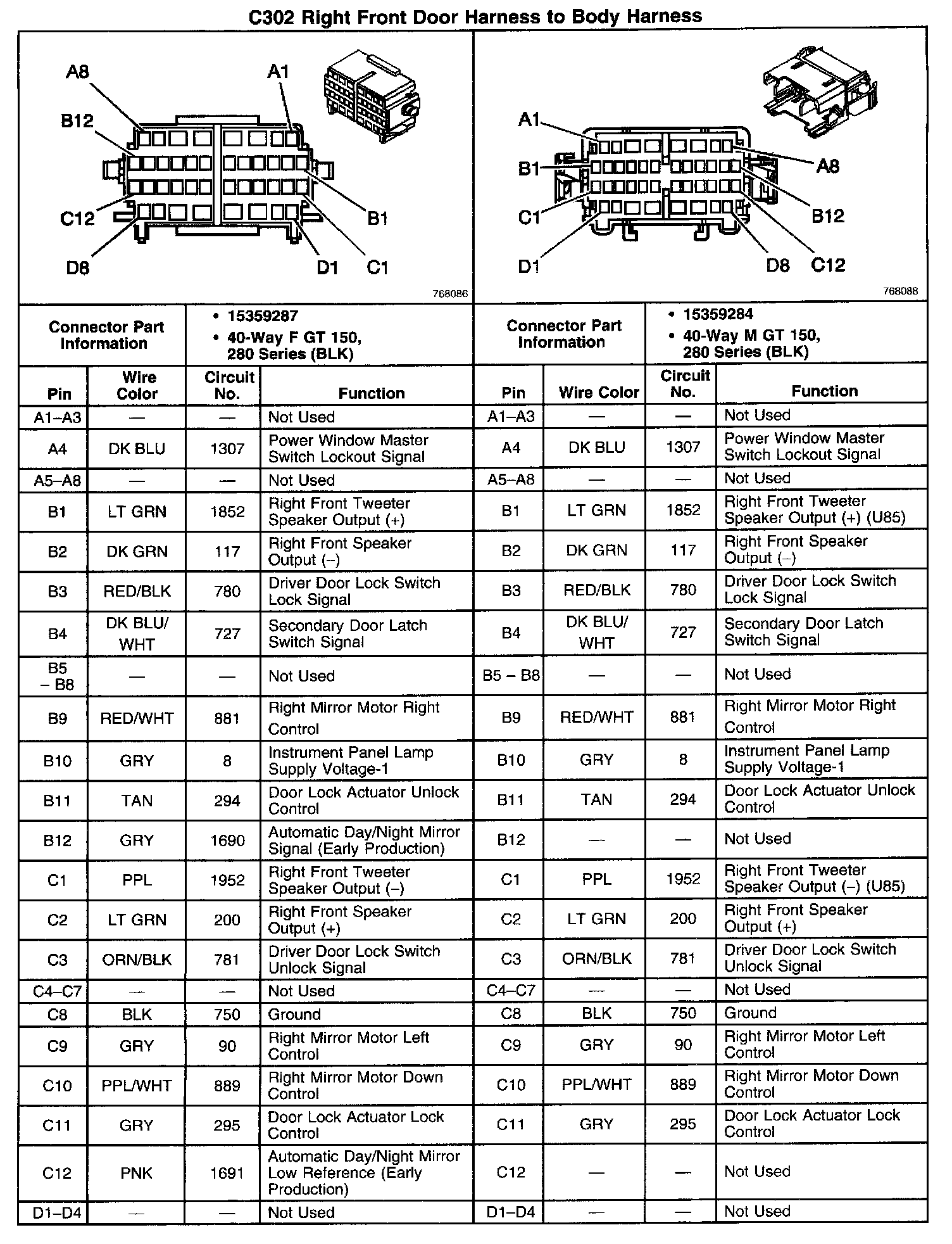 C302 Right Front Door Harness To Body Harness Part 1: