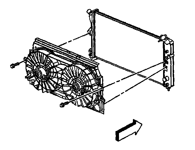 6. Install the cooling fan shroud clip to the top of the radiator. Apply pressure in order to completely engage the clip onto the radiator.