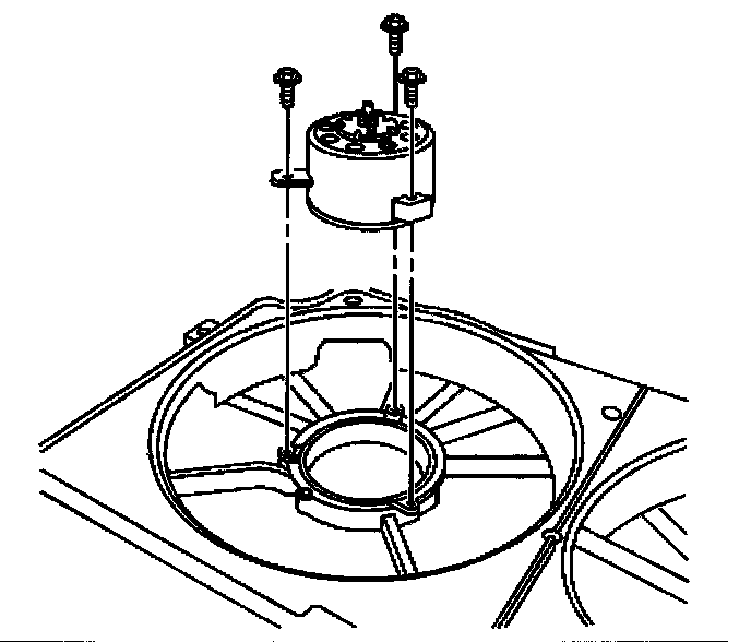 Caution: An electric fan under the hood can start up even when the engine is not running and can injure you. Keep hands, clothing and tools away from any underhood electric fan. To help avoid personal injury or damage to the vehicle, a bent, cracked, or damaged fan blade or housing should always be replaced.