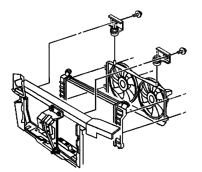 13. Install the radiator upper support brackets and bolts that hold the fan shroud.