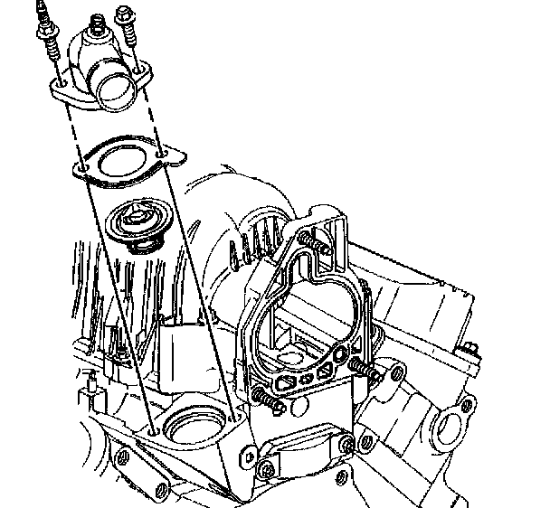 2. Install the gasket and the water outlet housing.