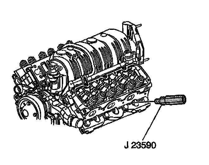4. Install the J 23590 to the spark plug port and apply compressed air in order to hold the valves closed.