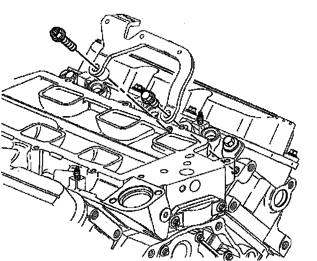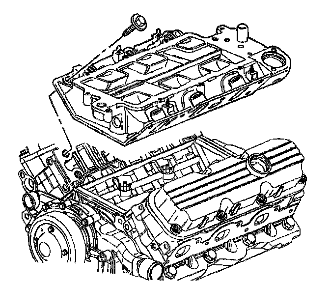 Notice: The two bolts which fasten the lower intake manifold to the cylinder head are accessible only after the upper intake is removed. The bolts are located in the right front and left rear corners of the lower intake manifold. Remove the upper intake manifold to service the lower intake.
