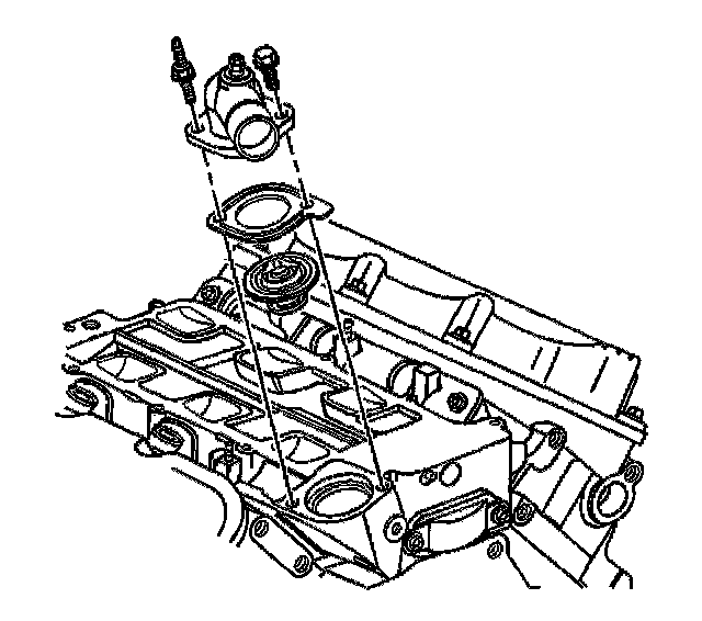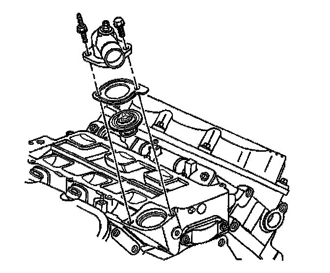 2. If removed, install the thermostat, the gasket, and the water outlet housing.