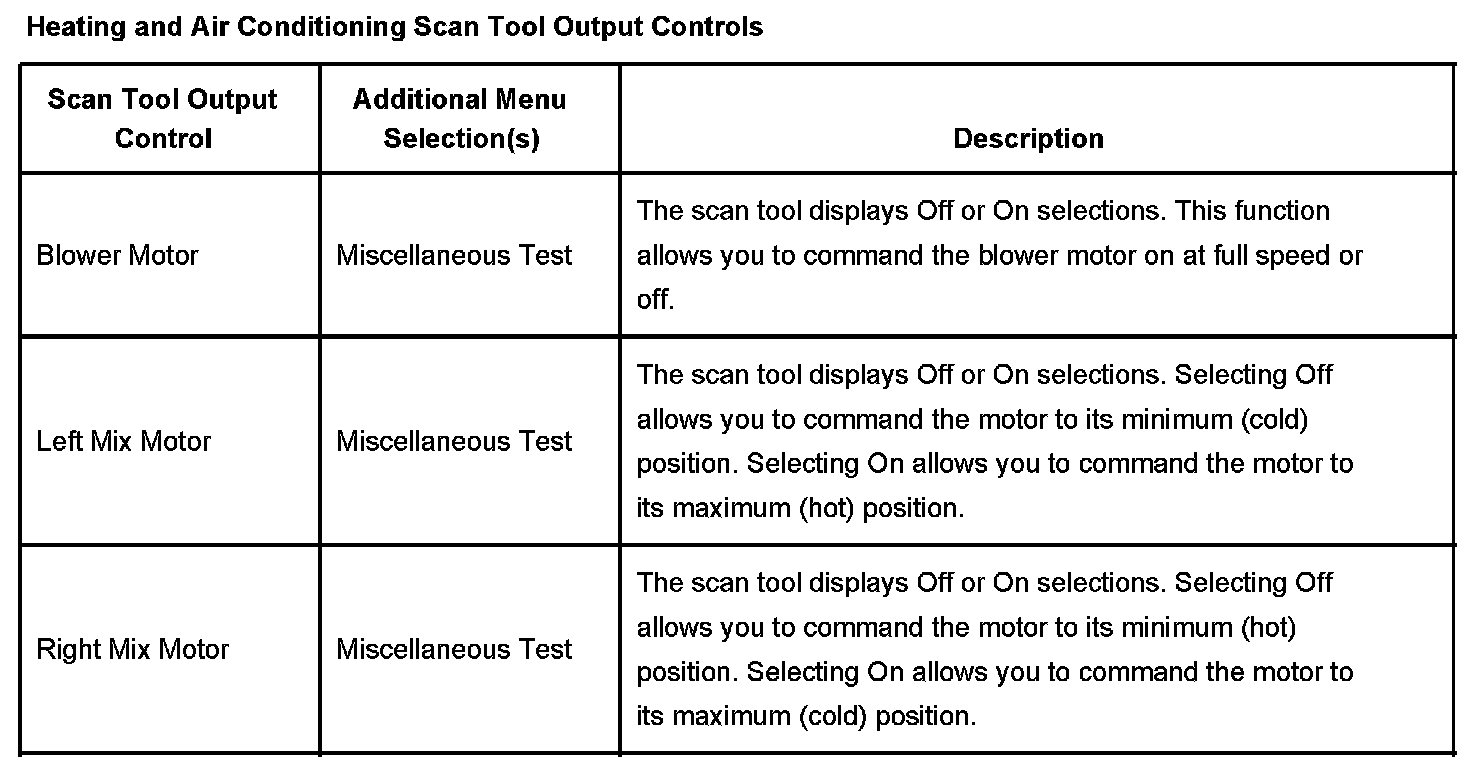 Heating And Air Conditioning Scan Tool Output Controls: