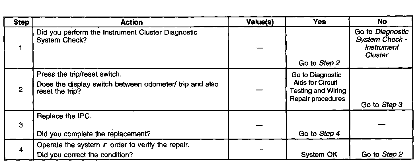 Odometer Trip/Reset Switch Inoperative