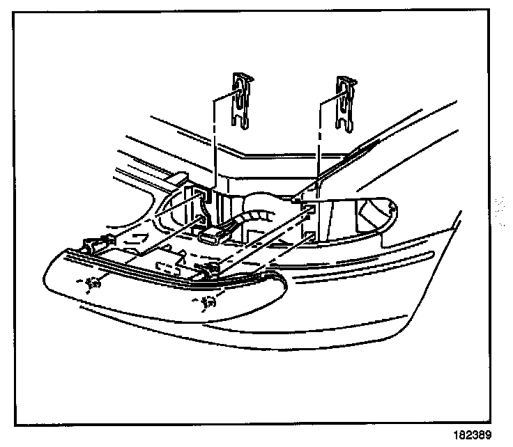 6. Position the headlamp mounting tabs to the slots in the upper fascia support and the fender reinforcement.