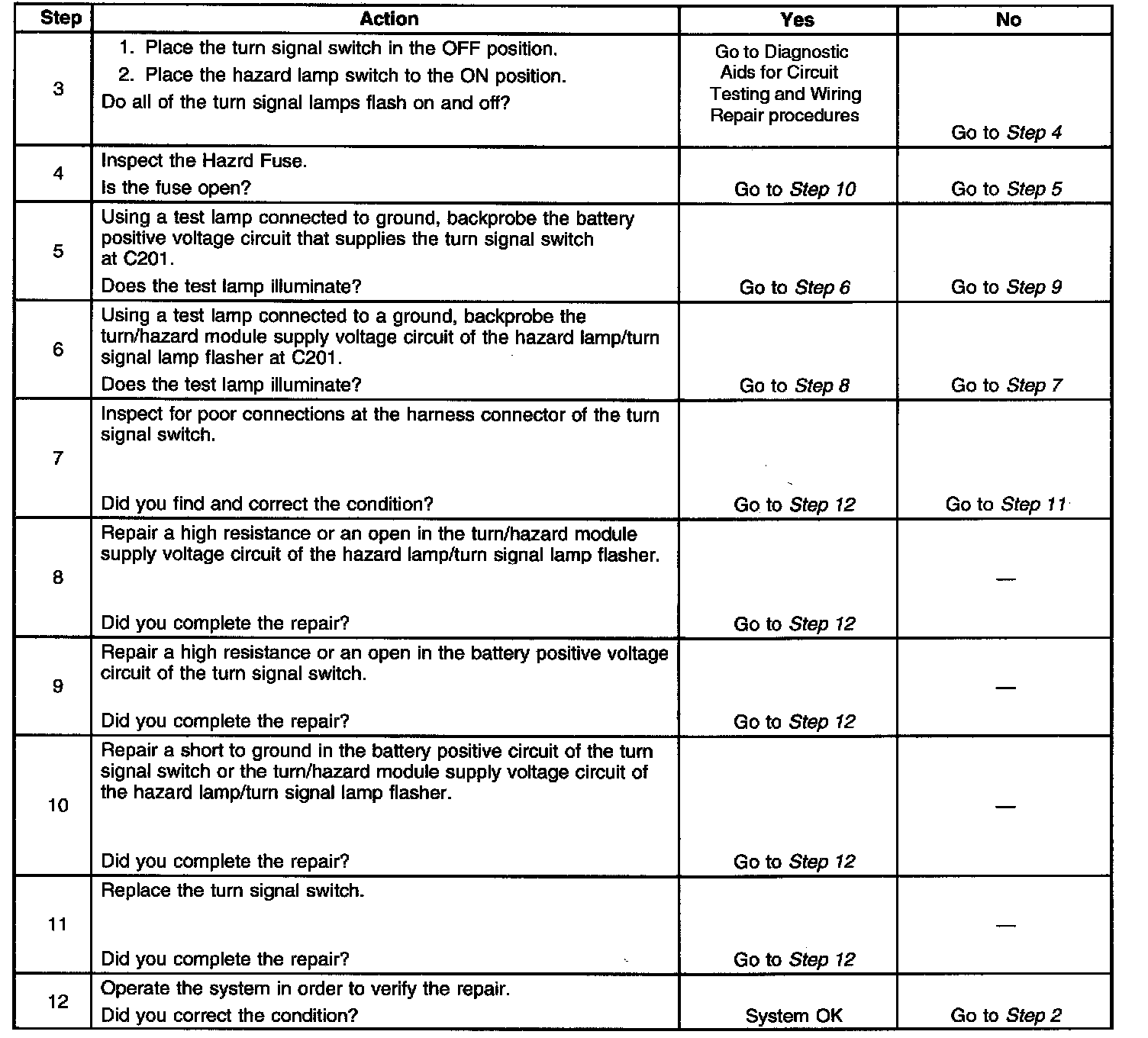 Hazard Lamps Inoperative