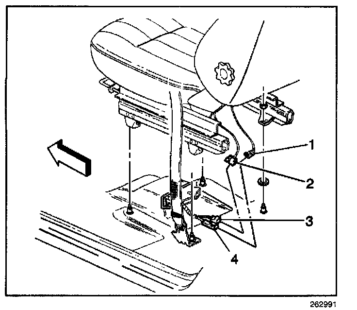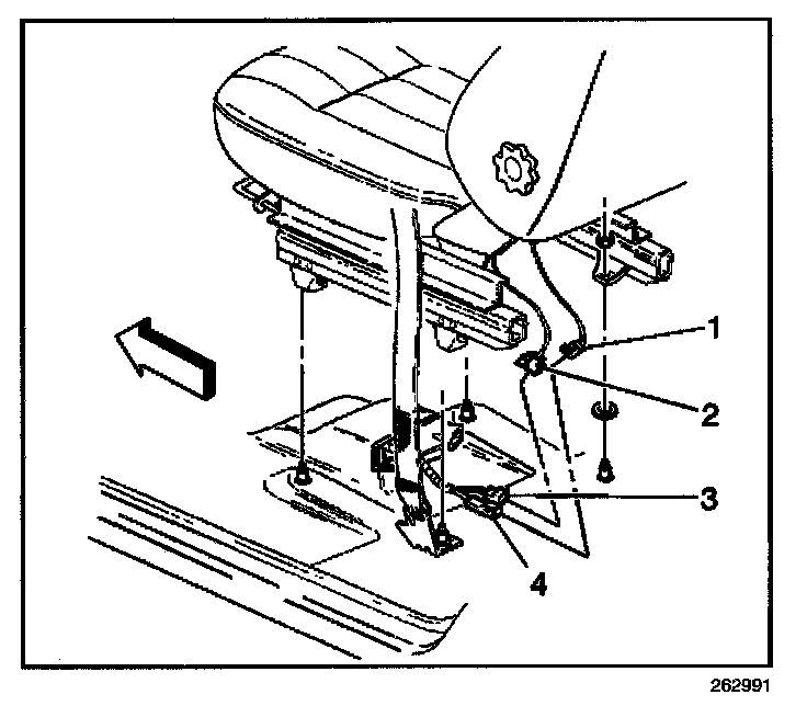 1. Connect the inflatable restraint side impact module - LF connector (4) located under the driver seat.