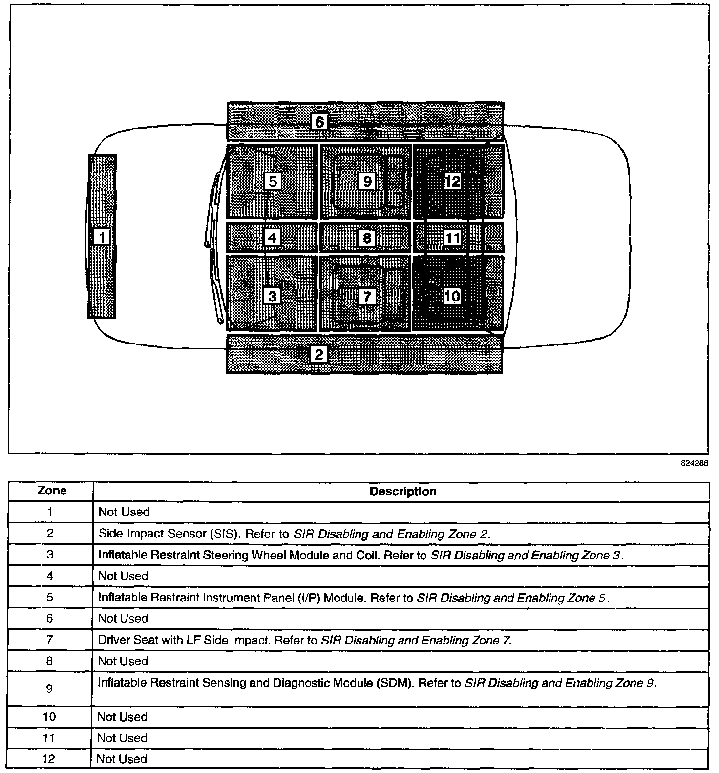 The SIR system has been divided into Disabling and Enabling Zones. When performing service on or near SIR components or SIR wiring, it may be necessary to disable the SIR components in that zone.
