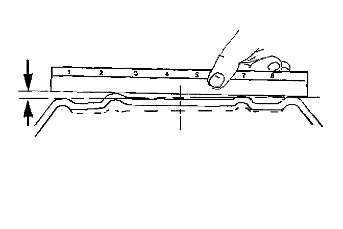 1. Use a straight edge 203 - 229 mm (8 - 9 inch) long. Place the straight edge on the wheel inboard mounting surface. Try to rock the straightedge up and down within the mounting surface.