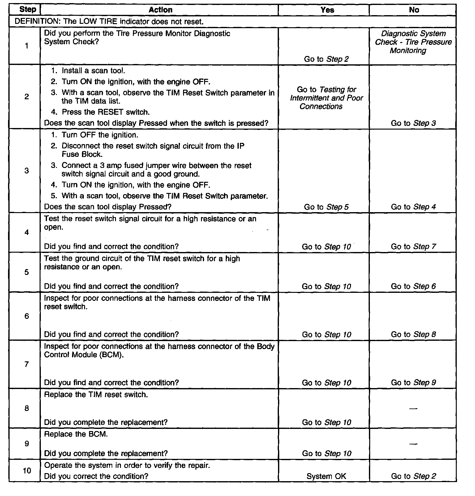 Low Tire Pressure Indicator Does Not Reset