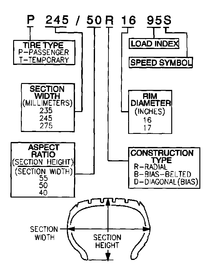 Most P-metric tire sizes do not have exact corresponding alphanumeric tire sizes. Replacement tires should be of the same Tire Performance Criteria (TPC) specification number including the same size, the same load range, and the same construction as those originally installed on the vehicle. Consult a tire dealer if you must replace the P-metric tire with other sizes. Tire companies can best recommend the closest match of alphanumeric to P-metric sizes within their own tire lines.
