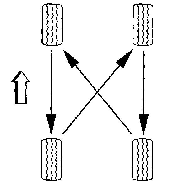 Always use a 4-wheel rotation. After rotation, check the wheel nuts for specified torque. Then, set the tire pressure.