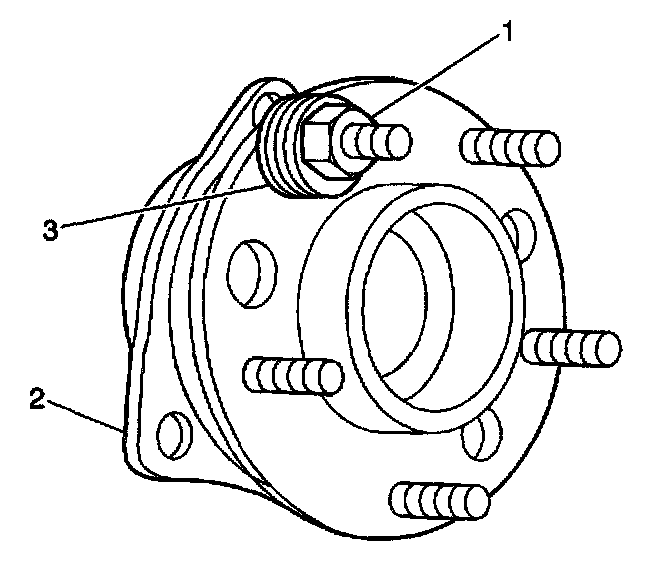 3. Install the wheel nut (1) with the flat side against the washers (3).