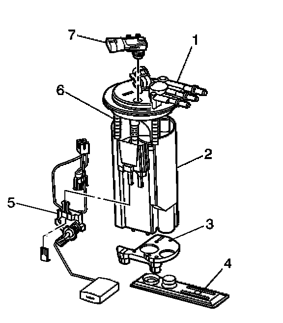 5. Remove the fuel tank pressure sensor (7) from the fuel sender assembly.