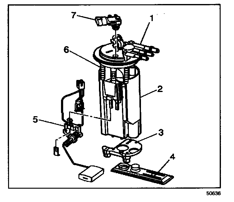 1. Install the new fuel tank pressure sensor (7) to the fuel sender assembly.