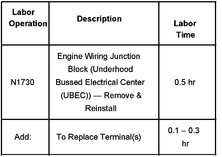 These conditions may be due to deformed or collapsed terminals in the Engine Wiring Junction Block (Underhood Bussed Electrical Center (UBEC)) connectors causing a poor connection.
