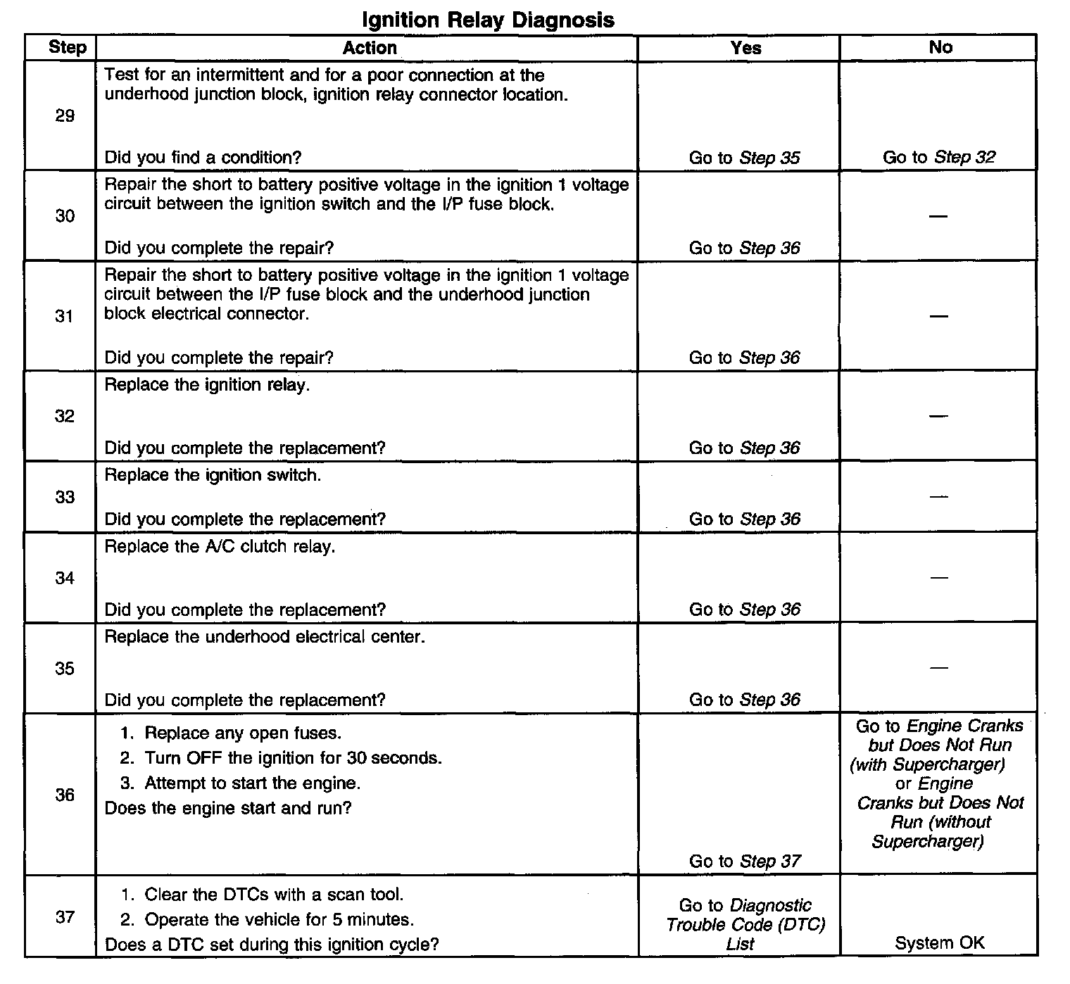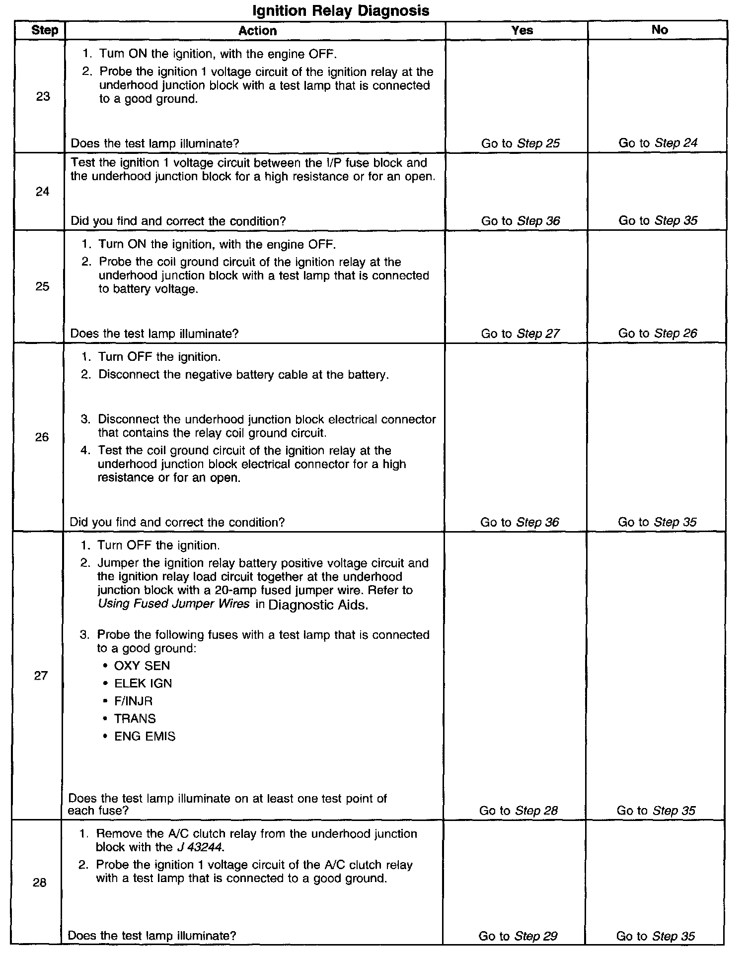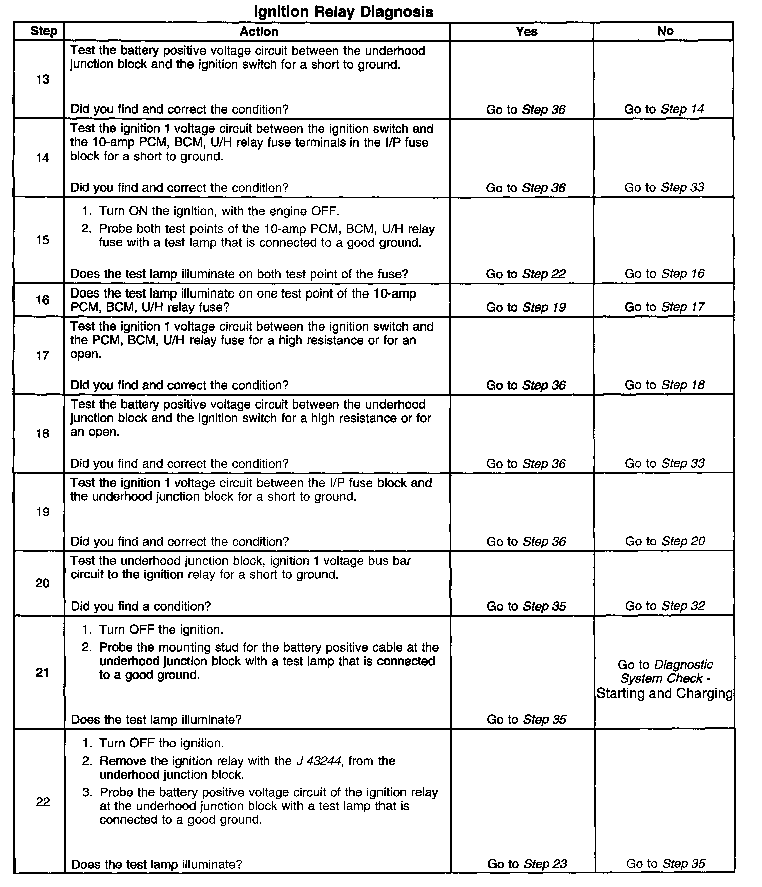 The ignition relay table assumes that the vehicle battery is fully charged.