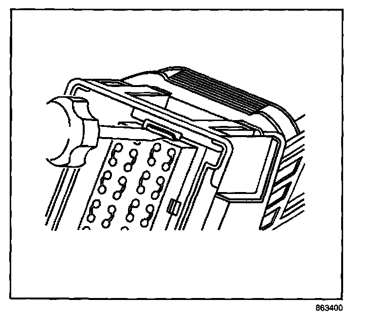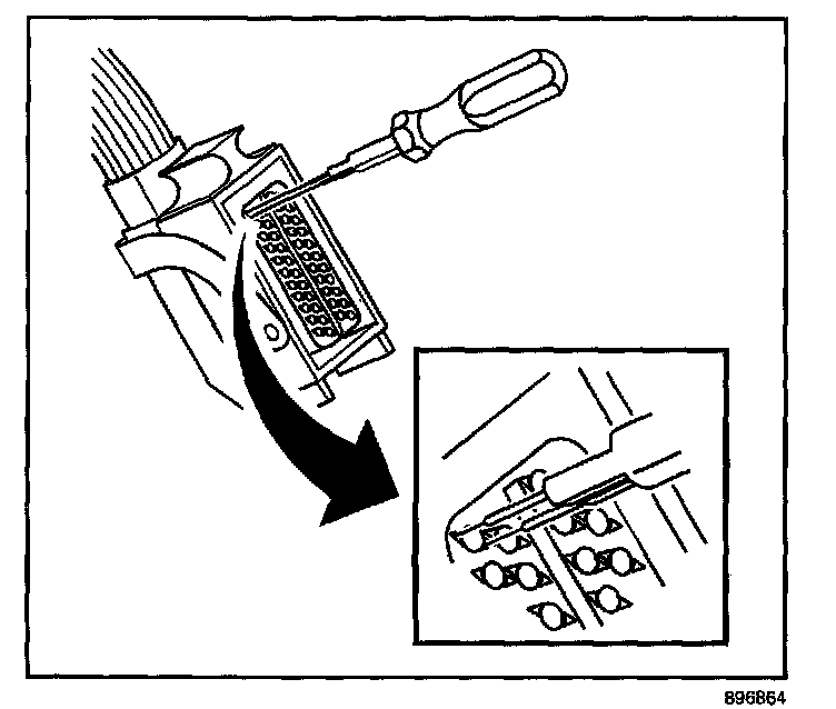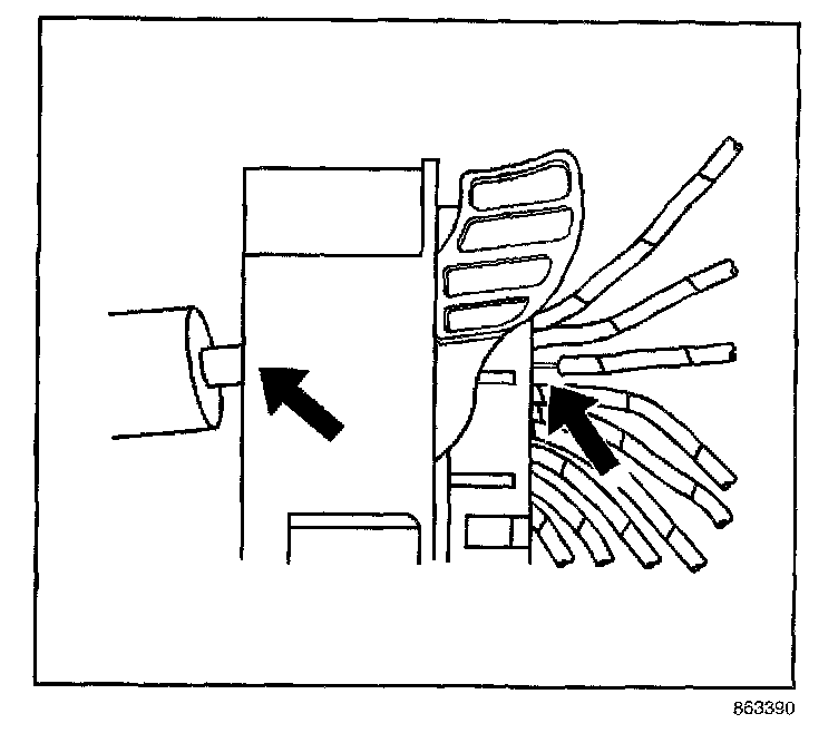 7. Insert the J 44020-4 (GM P/N 15314260) tool into the 2 triangular cavities on each side of the terminal at the front of the connector,