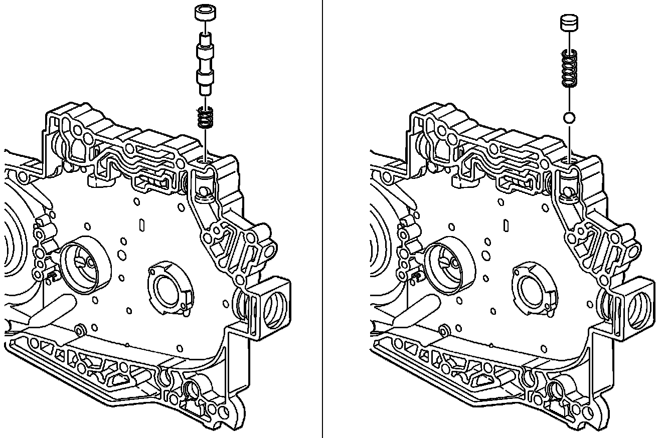 The internal changes to the 4T65E transmission are in the valve body, spacer plate and the channel plate. These parts are unique to the Touch Activated Power (TAP)-equipped 4T65E transmission. (TAP is only available on supercharged Grand Prix models.) A non-TAP transmission has a different valve body, spacer plate and channel plate. DO NOT MIX THE PARTS.