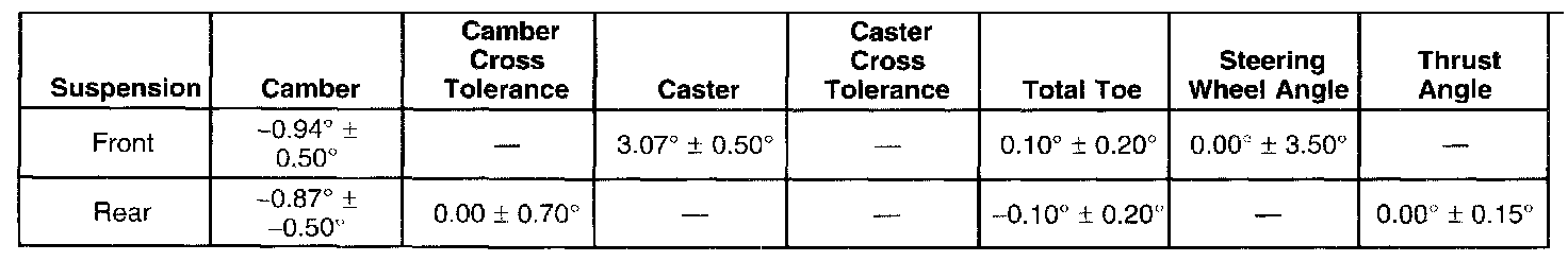 Wheel Alignment Specifications