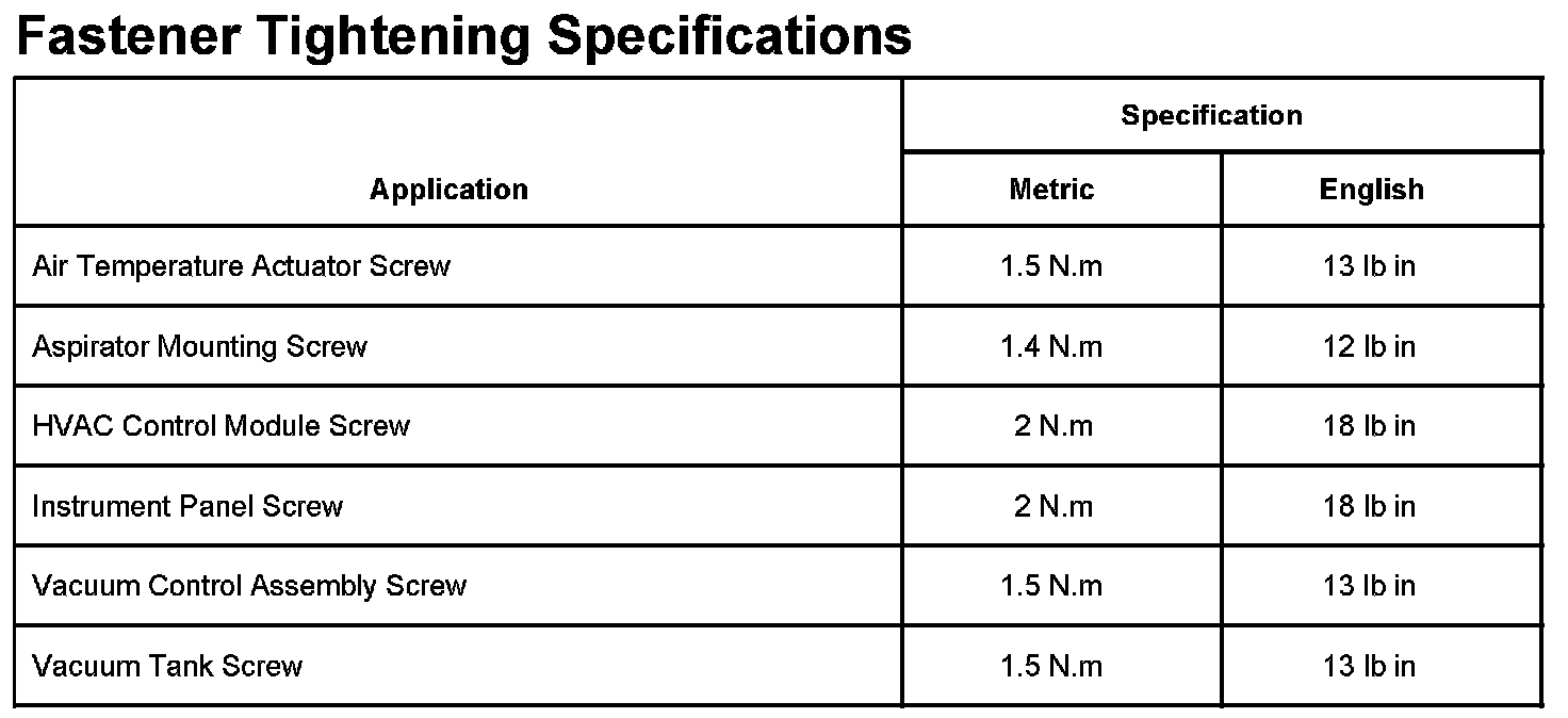 Fastener Tightening Specifications: