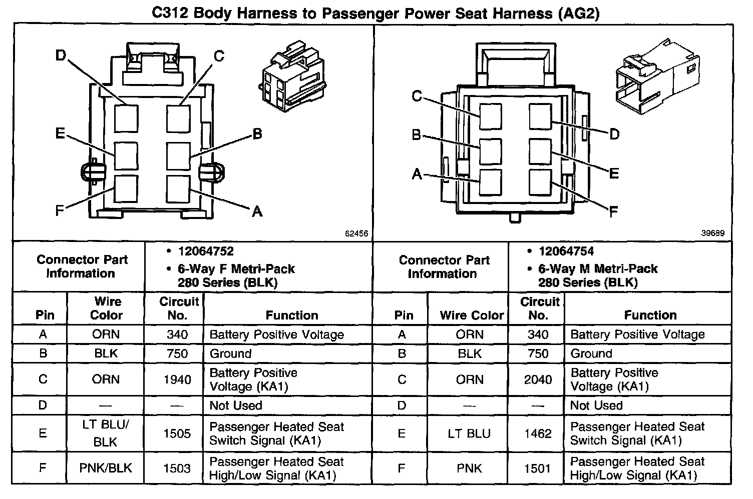 C312 Body Harness To Driver Power Seat Harness (With RPO Code AG2):