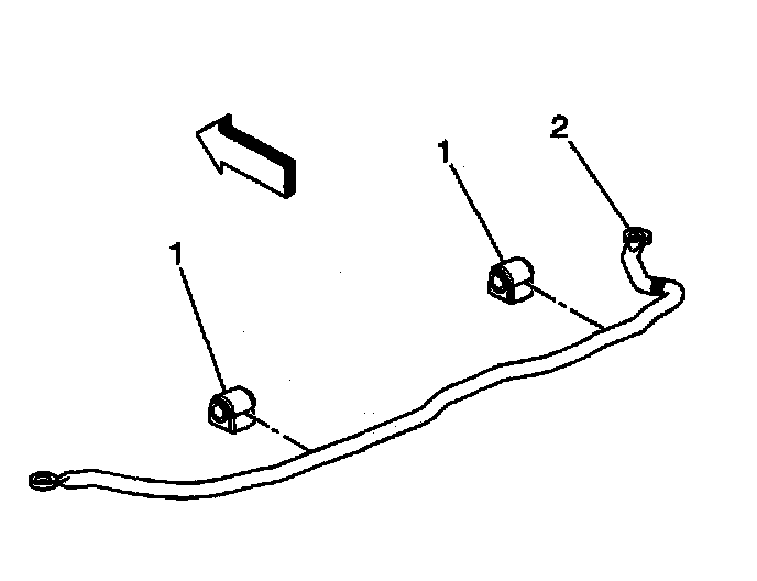 1. Install the left and right side stabilizer shaft insulators (1) to the stabilizer shaft (2).