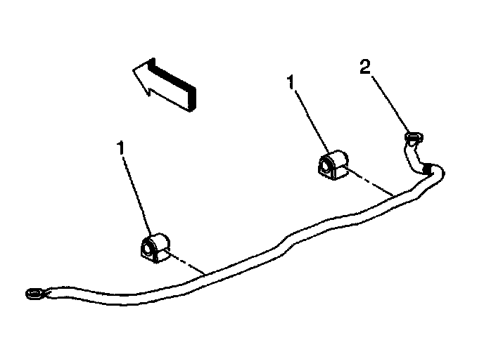 4. Remove the left and right side stabilizer shaft insulators (1) from the stabilizer shaft (2).