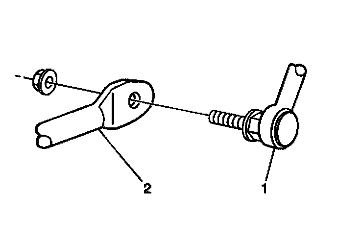 3. Install the stabilizer shaft link nut to the stabilizer shaft link (1) and the stabilizer shaft (2).