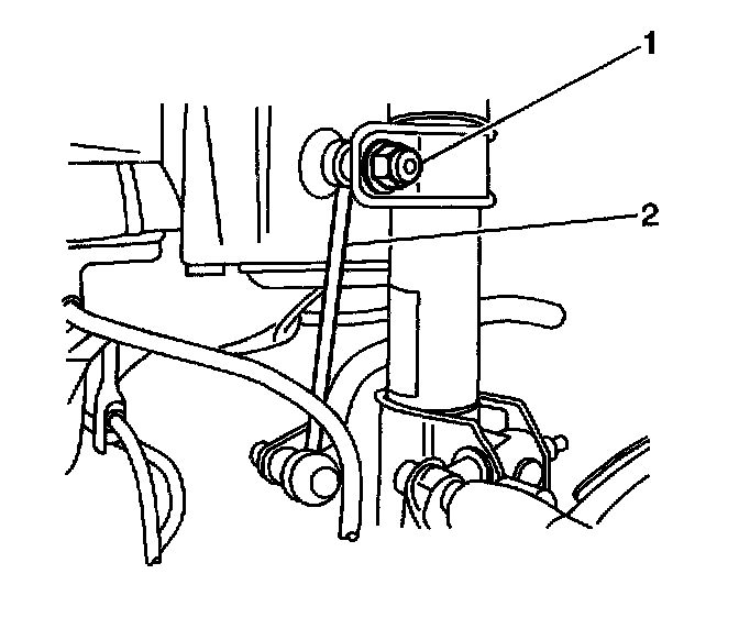 3. Remove the stabilizer shaft link nut from the stabilizer shaft link (1) and the strut.