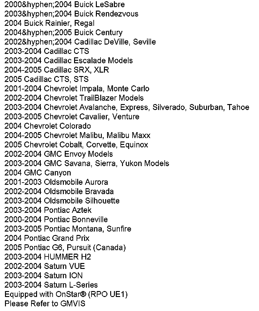 Vehicles eligible for an OnStar(R) hardware upgrade are listed in this bulletin. Vehicle upgradeability can also be determined by typing the VIN into the field entitled "Determine VIN Hardware Functionality" on the OnStar(R) Online Enrollment website, located in the sales or service workbench tab of GM GlobalConnect. Canadian Dealers can use a similar tool that is available within the OnStar(R) Canada Online Enrollment site that can be accessed from the OnStar(R) Brand Resources in GlobalConnect.
