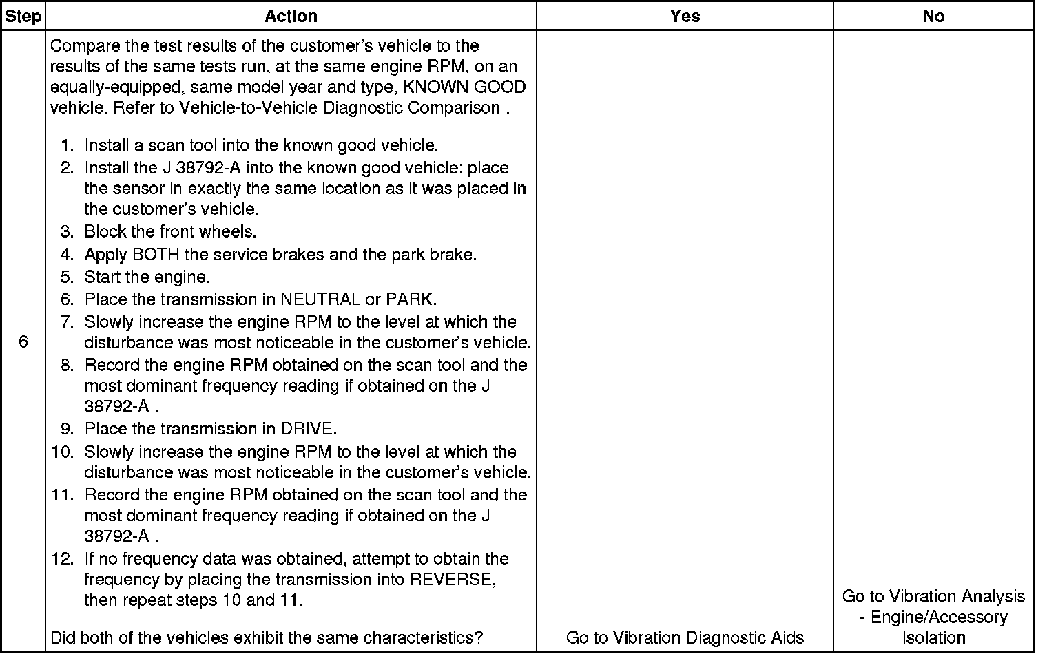6. Making comparisons of the customer's vehicle with an equally equipped, same model year and type, KNOWN GOOD vehicle will help determine if certain disturbances may be characteristic of a vehicle design.
