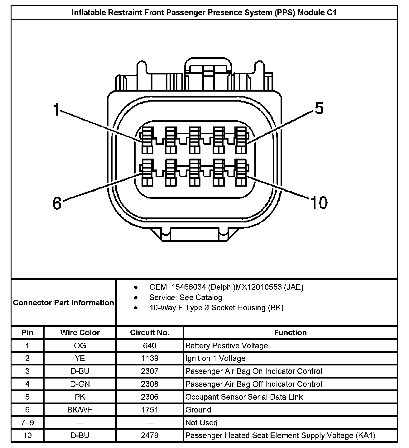 Inflatable Restraint Front Passenger Presence System (PPS) Module C1: