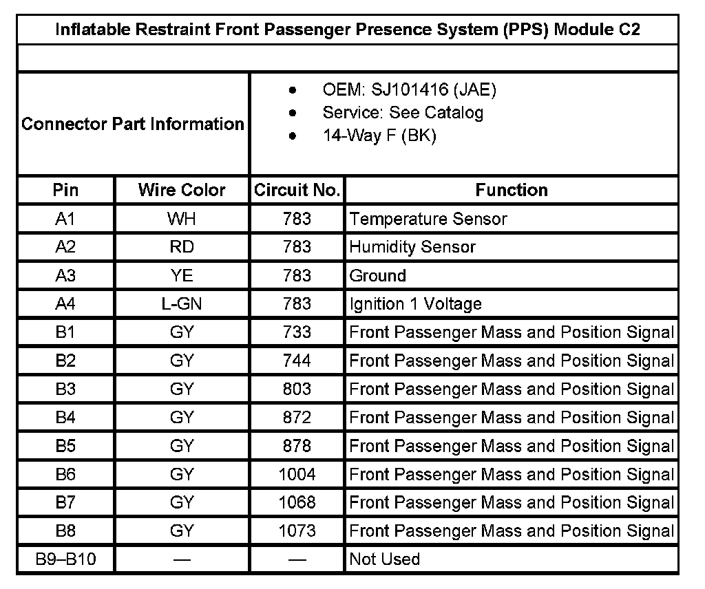 Inflatable Restraint Front Passenger Presence System (PPS) Module C2: