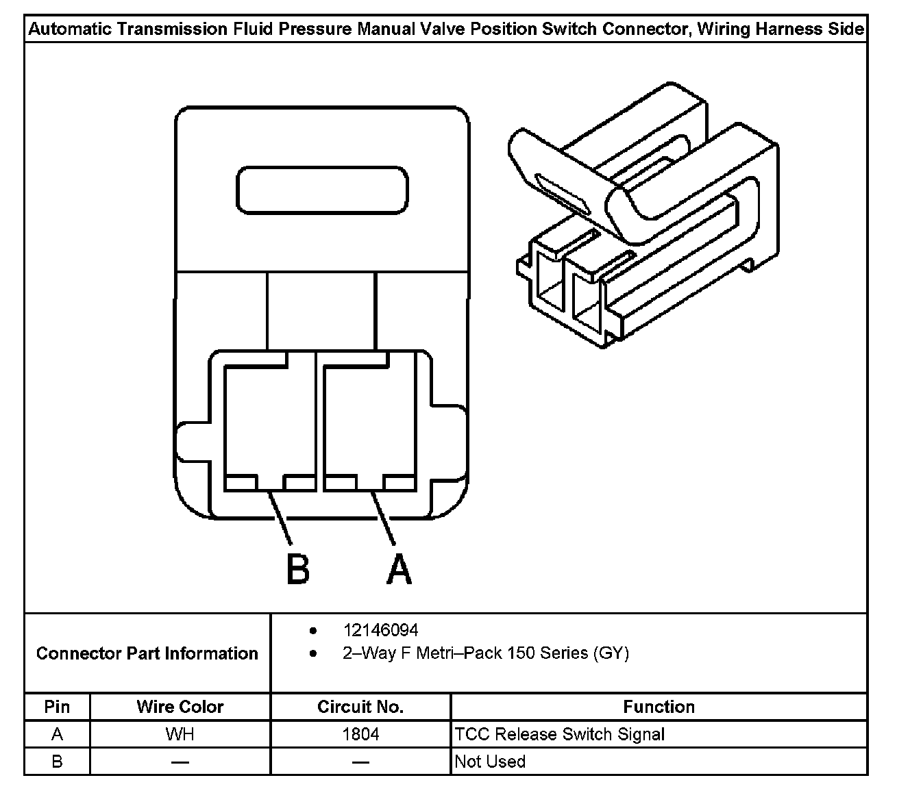 Automatic Transmission Fluid Pressure Manual Valve Position Switch Connector End View, Wiring Harness Side: