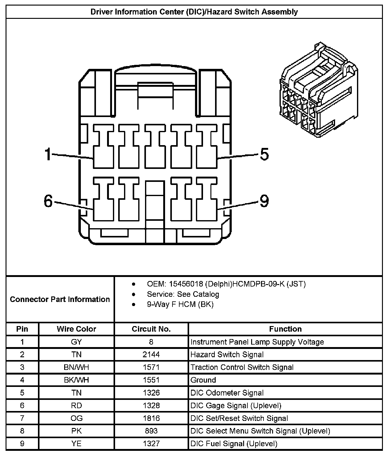 Driver Information Center (DIC)/Hazard Switch Assembly: