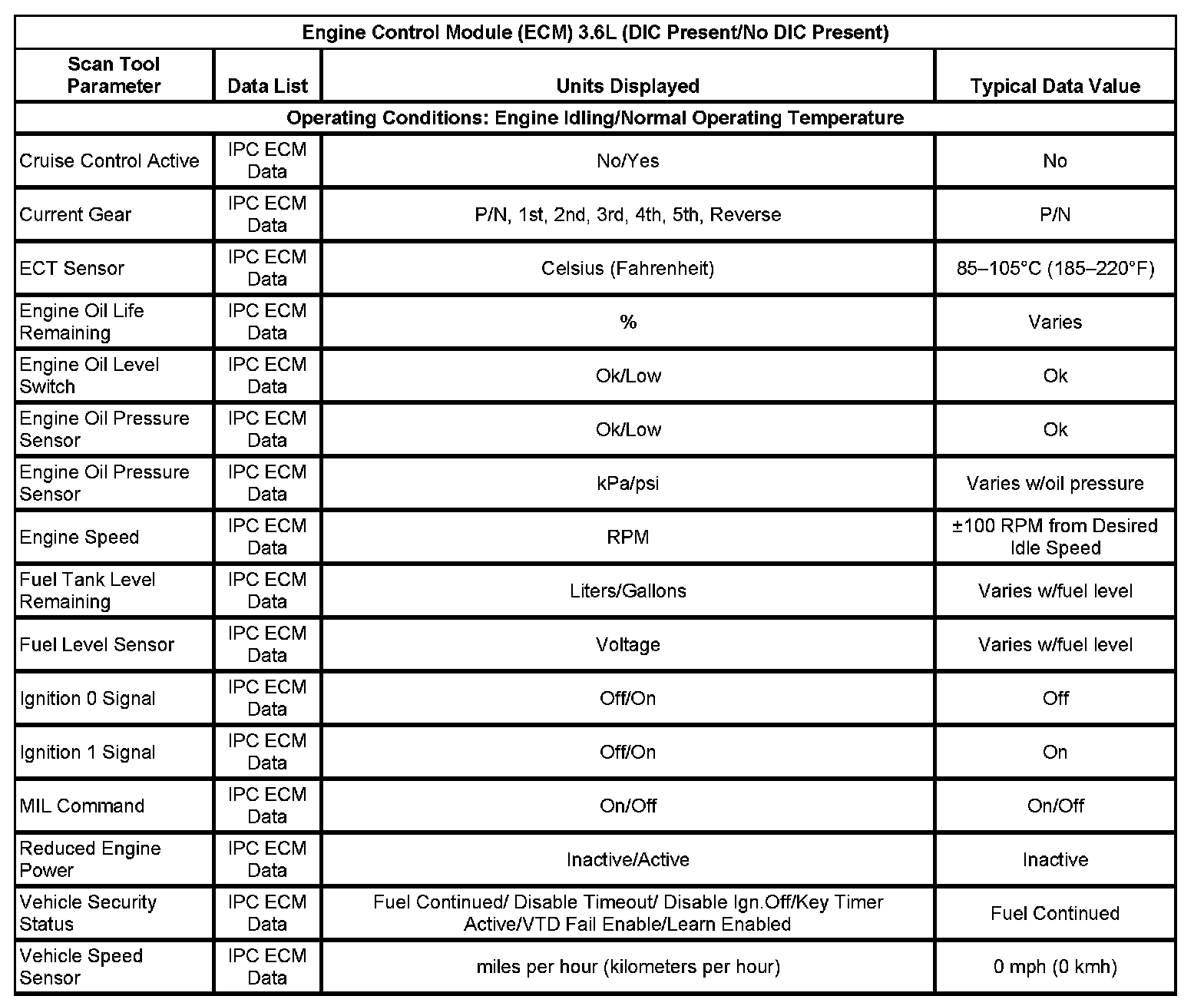 Scan Tool Data List - ECM/PCM
