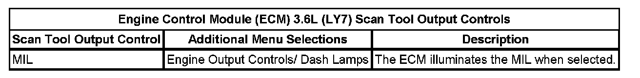Engine Control Module (ECM) Scan Tool Output Controls: