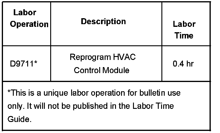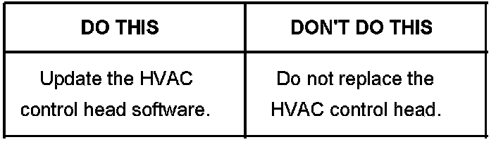Technicians are to reprogram the HVAC control head with an updated software calibration. This new service calibration was released with TIS satellite data update version 5.0 which was made available May 2, 2005. As always, make sure your Tech 2(R) is updated with the latest software version. DO NOT replace the HVAC control head for these conditions.