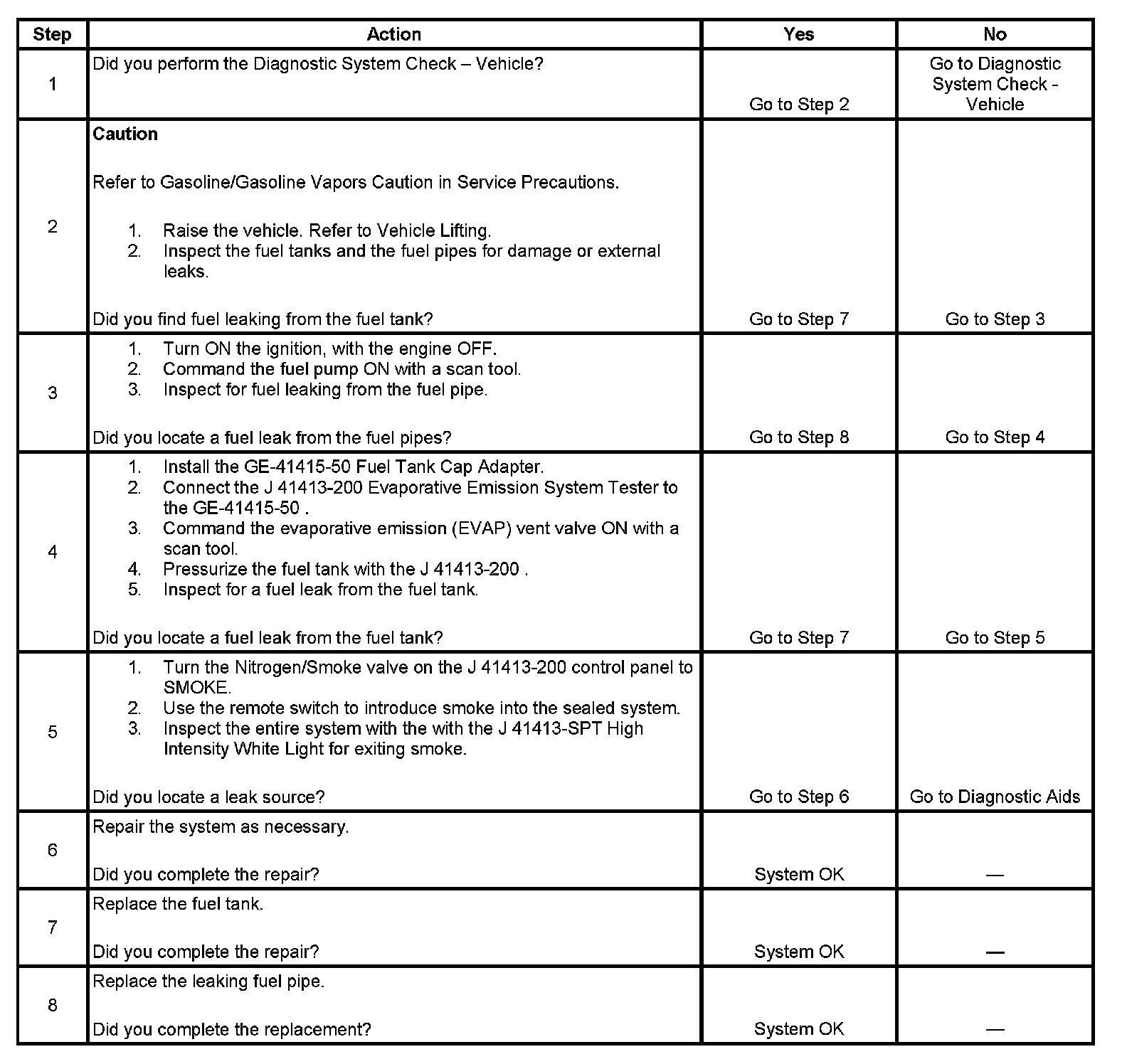 4. This step tests for fuel leaks below the fuel level in the fuel tank.