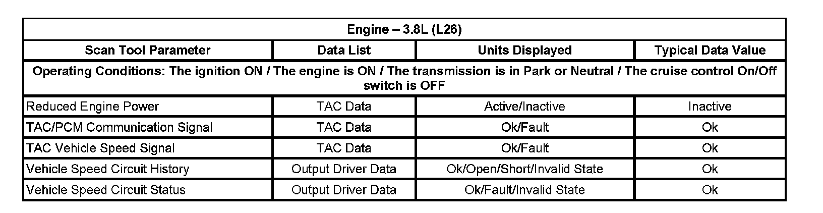 The typical data values are obtained from a properly operating vehicle under the conditions specified in the first row of the scan tool data list table. Comparison of the parameter values from the suspect vehicle with the typical data values may reveal the source of the customer concern.