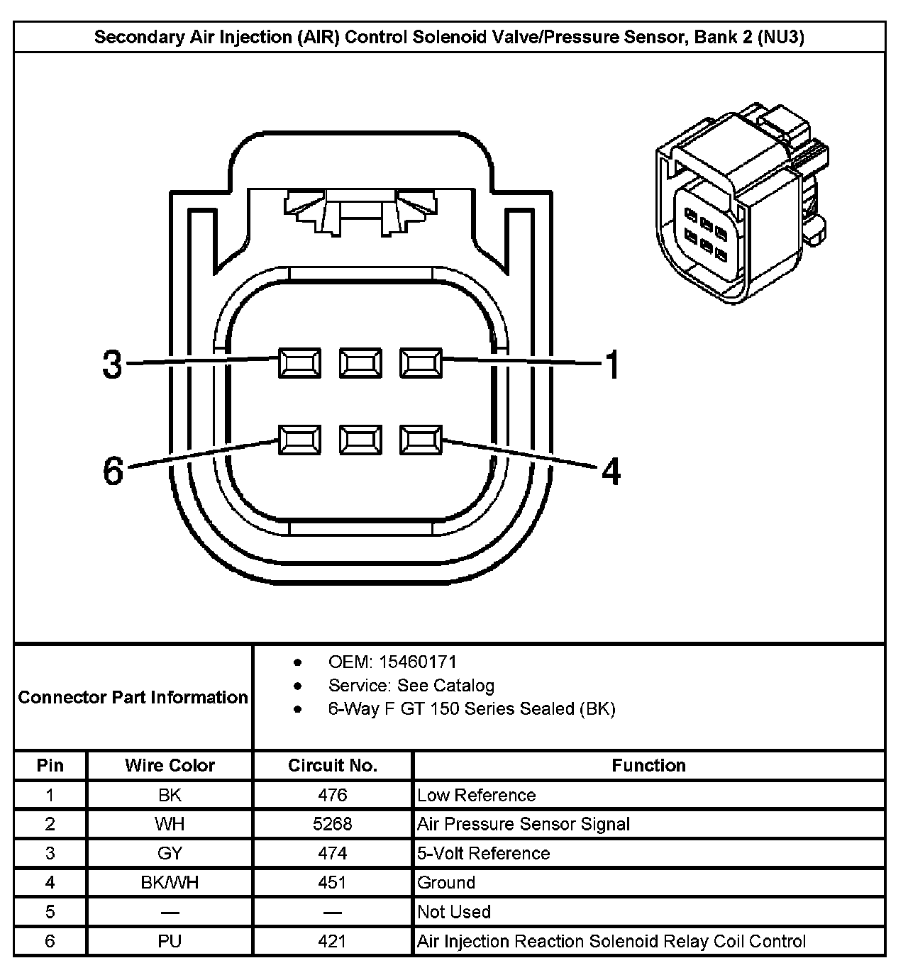 Secondary Air Injection (AIR) Control Solenoid Valve/Pressure Sensor, Bank 2 (With RPO Code NU3):