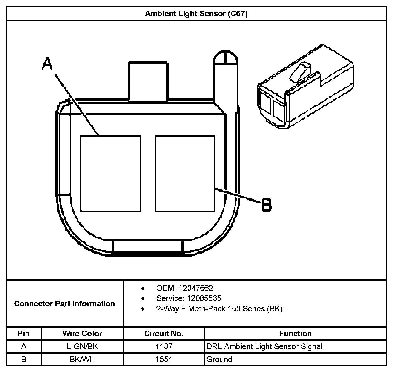 Ambient Light Sensor (With RPO Code C67):