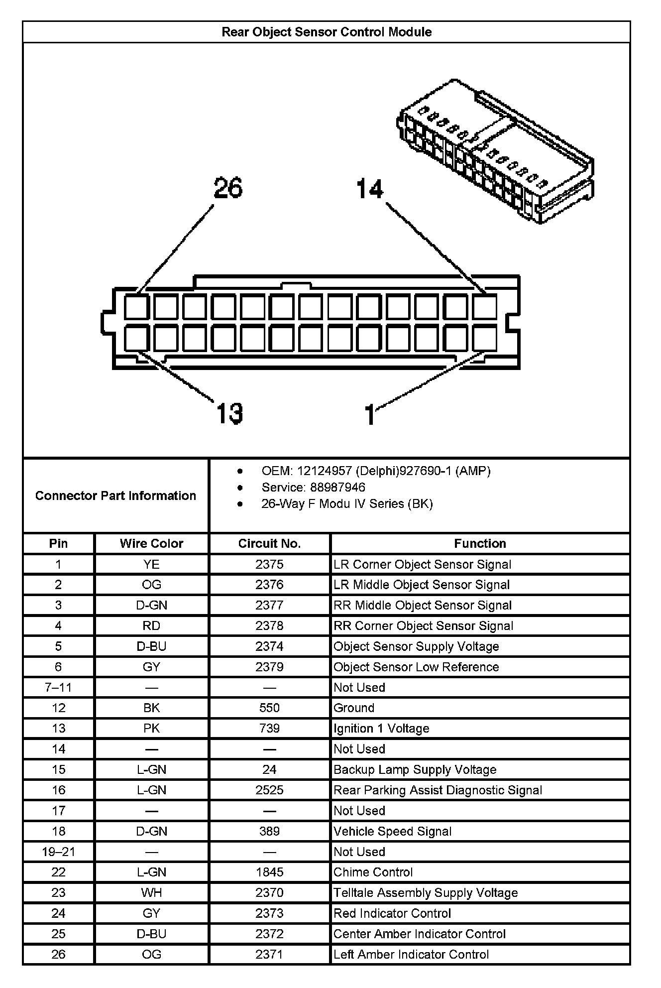 Rear Object Sensor Control Module: