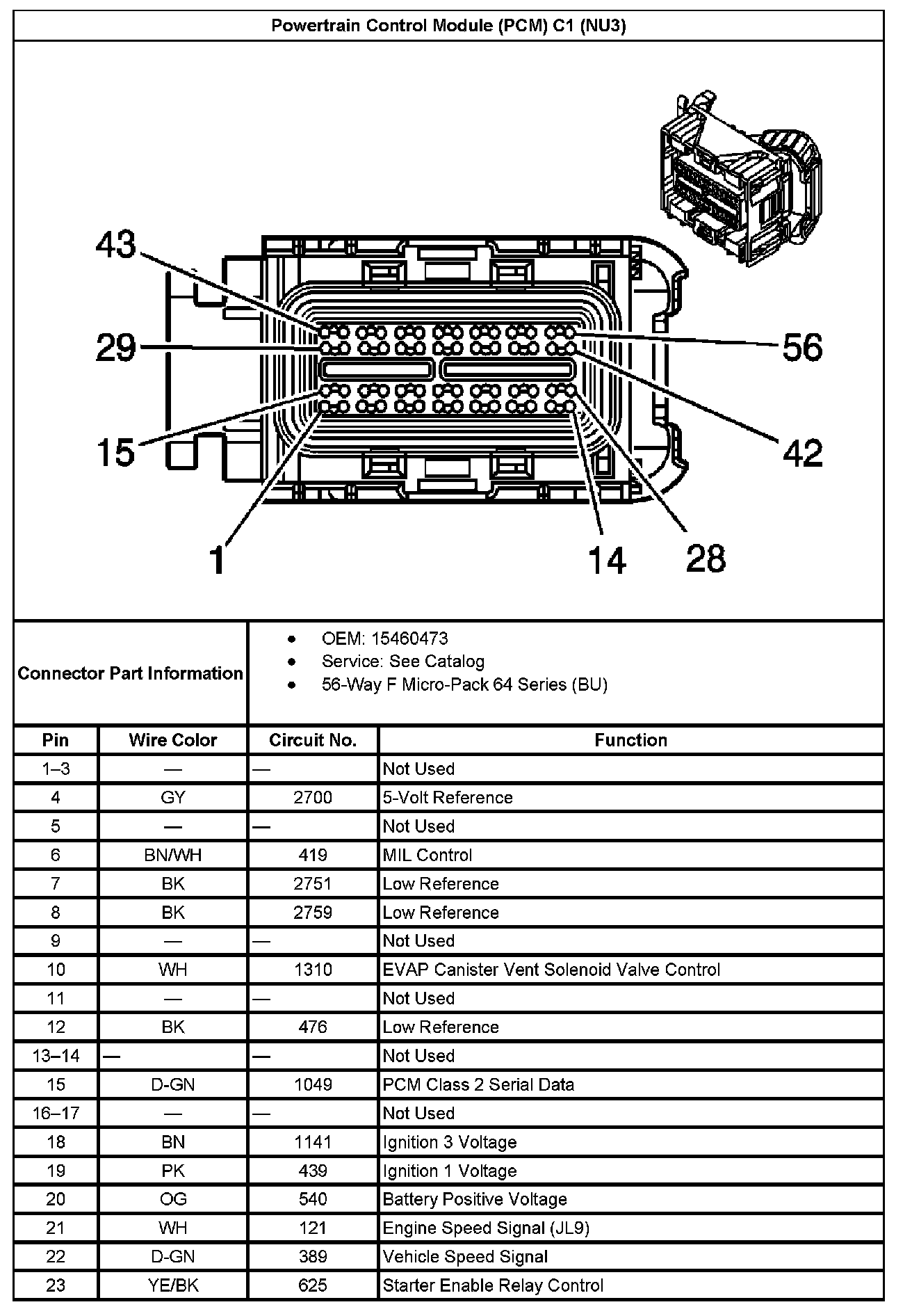 Powertrain Control Module (PCM) C1 (With RPO Code NU3) Part 1: